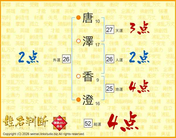 唐澤香澄さんの外運は26画の2点!