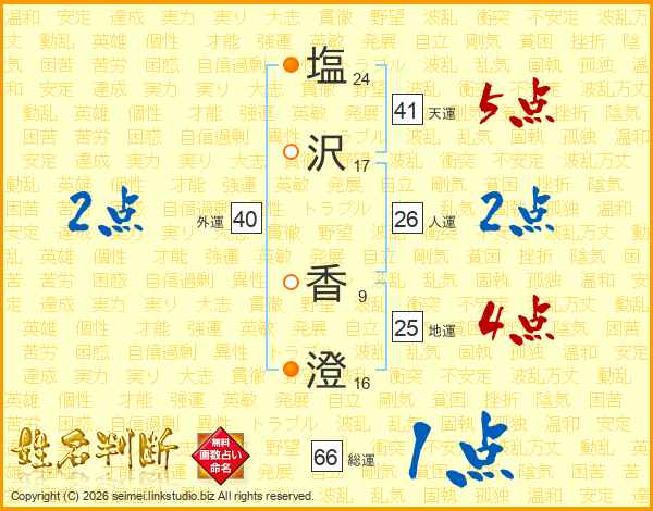 塩(24画)沢(17画) 香(9画)澄(16画)