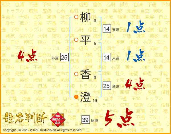柳(9画)平(5画) 香(9画)澄(16画)