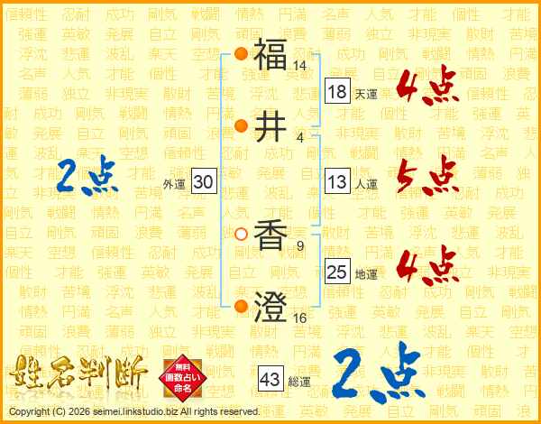 福(14画)井(4画) 香(9画)澄(16画)