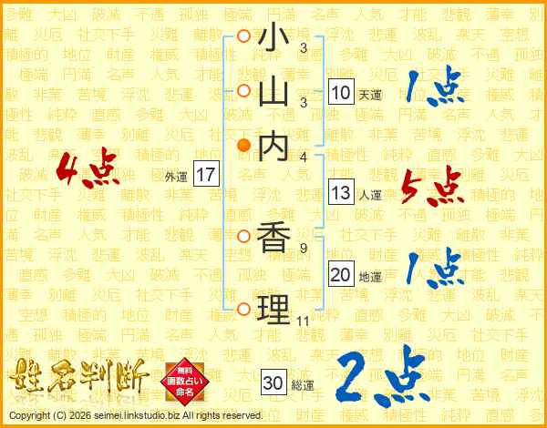 小山内香理さんの総運は30画の2点!