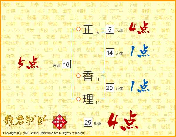 正(5画) 香(9画)理(11画)