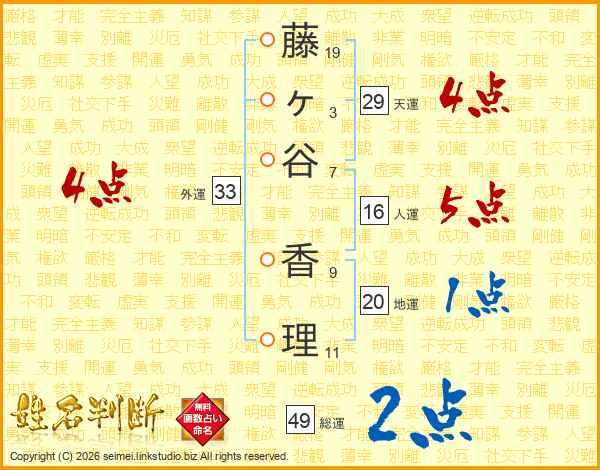 藤ヶ谷香理さんの外運は33画の4点!