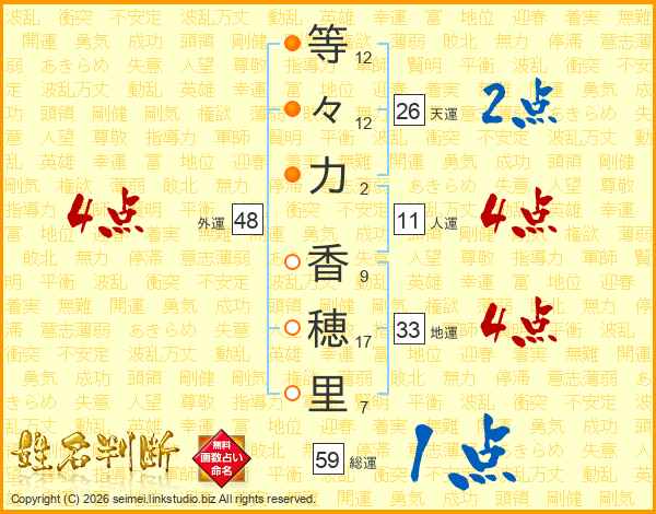 等々力香穂里さんの天運は26画の2点!