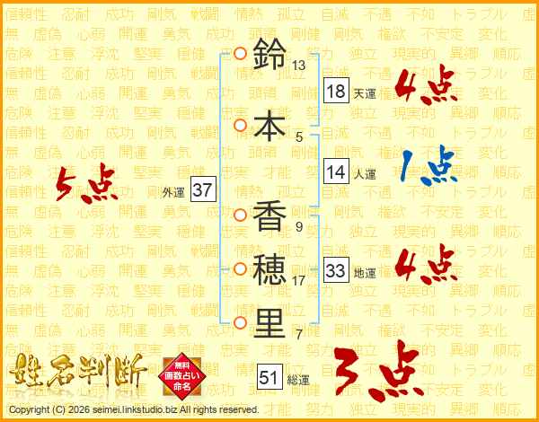鈴本香穂里さんの総運は51画の3点!