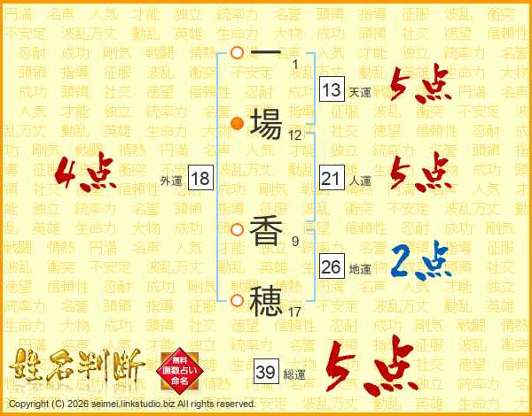 一場香穂さんの総運は39画の5点!