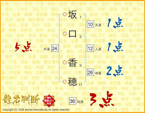 坂口香穂さんの地運は26画の2点!
