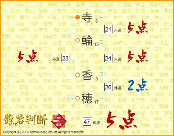 寺(6画)輪(15画) 香(9画)穂(17画)