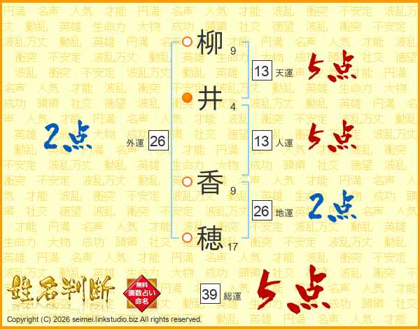 柳井香穂さんの総運は39画の5点!