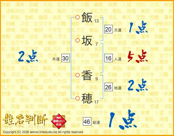 飯坂香穂さんの総運は46画の1点!