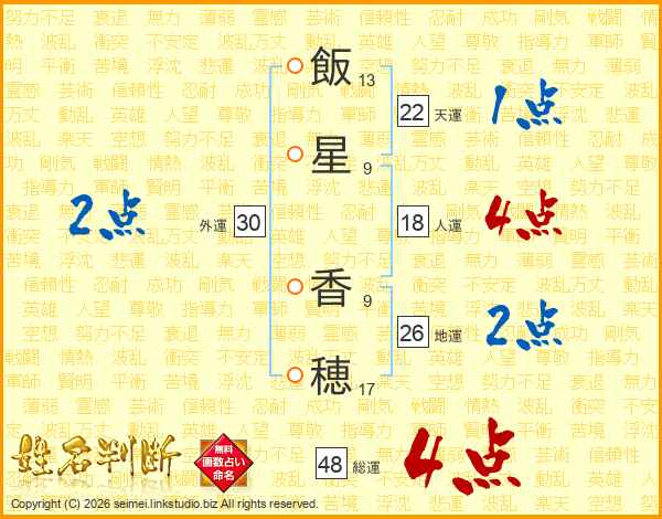 飯星香穂さんの総運は48画の4点!