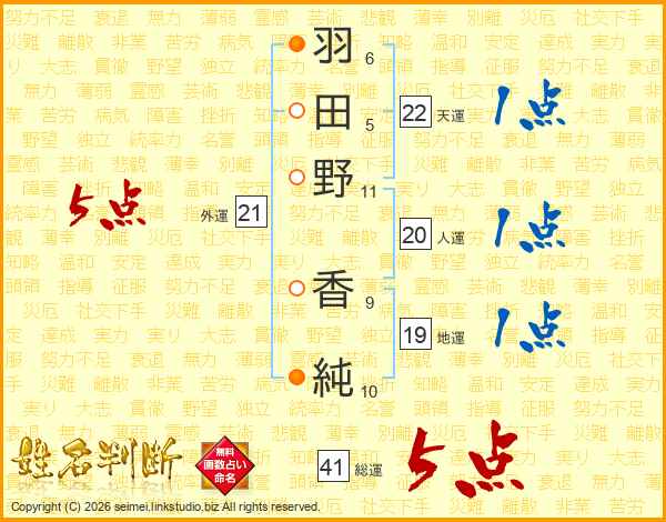 羽田野香純さんの総運は41画の5点!