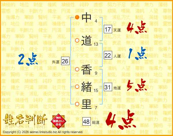 中道香緒里さんの天運は17画の4点!