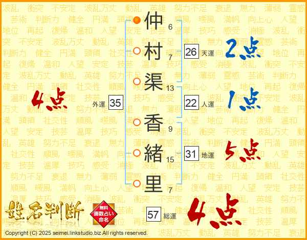仲村渠香緒里さんの総運は57画の4点!