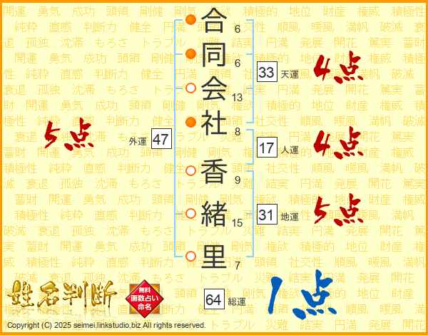 合同会社香緒里さんの総運は64画の1点!