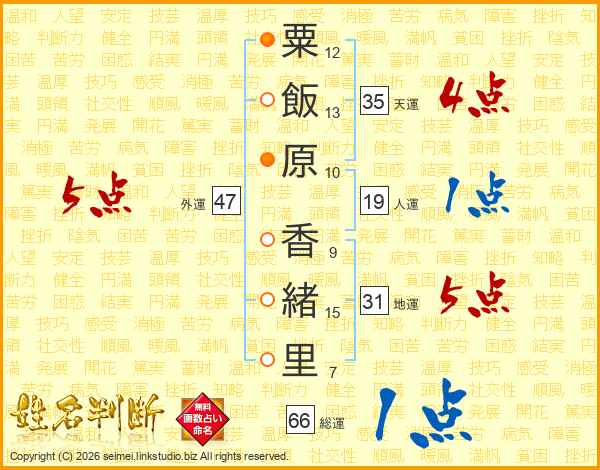 粟飯原香緒里さんの総運は66画の1点!