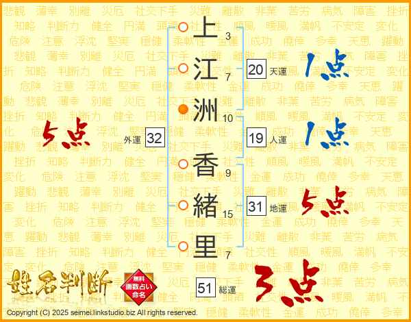 上江洲香緒里さんの外運は32画の5点!