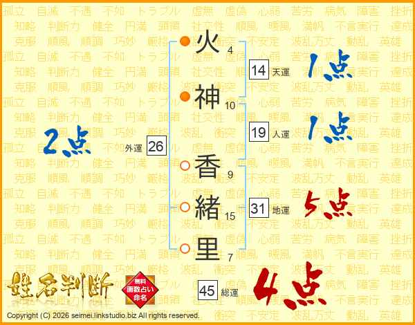 火神香緒里さんの総運は45画の4点!