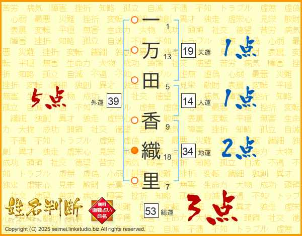 一万田香織里さんの外運は39画の5点!