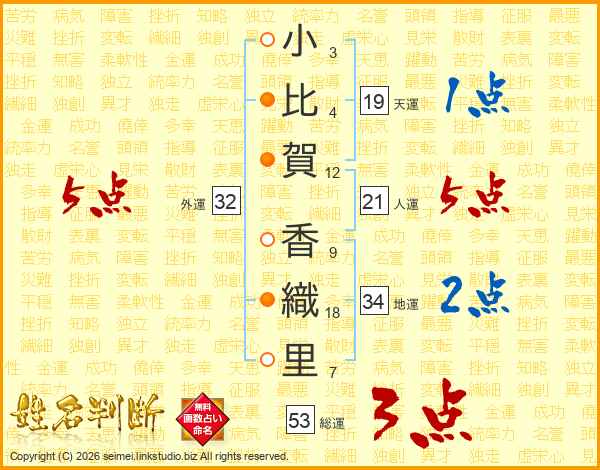 小比賀香織里さんの総運は53画の3点!