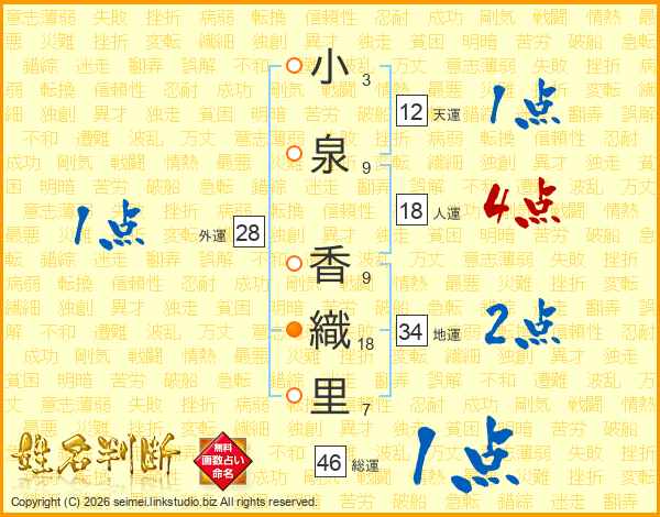 小泉香織里さんの総運は46画の1点!