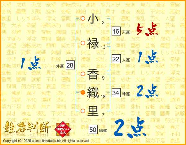 小禄香織里さんの総運は50画の2点!