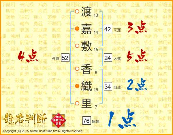 渡嘉敷香織里さんの外運は52画の4点!