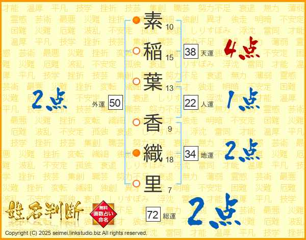 素稲葉香織里さんの総運は72画の2点!