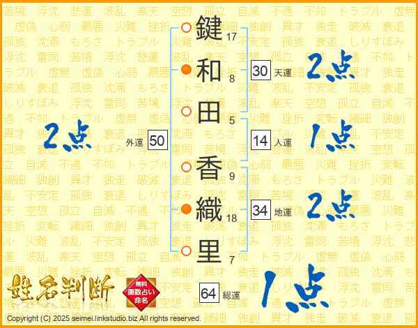 鍵和田香織里さんの総運は64画の1点!