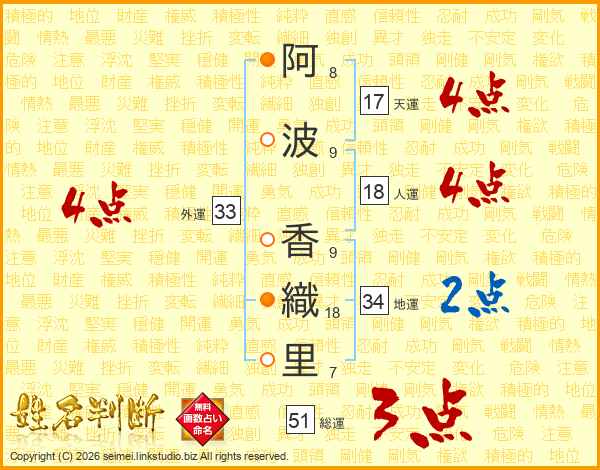 阿波香織里さんの外運は33画の4点!