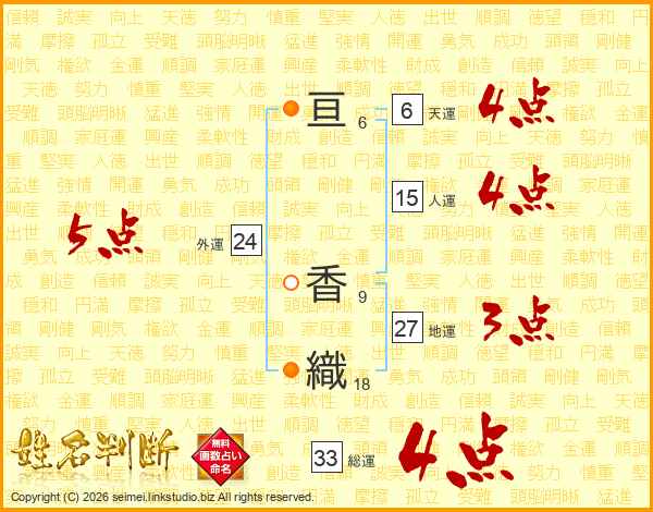 亘香織さんの総運は33画の4点!