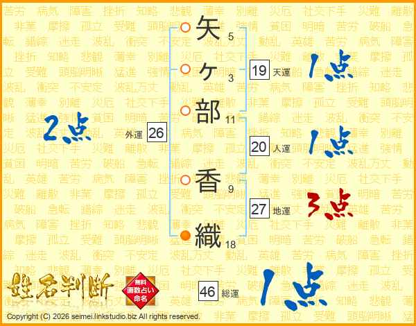 矢ヶ部香織さんの総運は46画の1点!