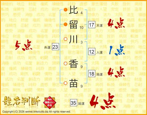 比留川香苗さんの総運は35画の4点!