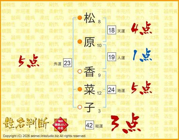 松原香菜子さんの総運は42画の3点!