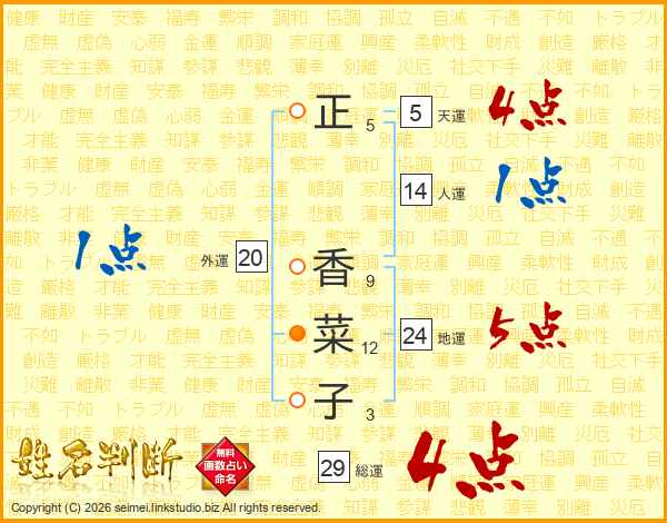 正香菜子さんの総運は29画の4点!