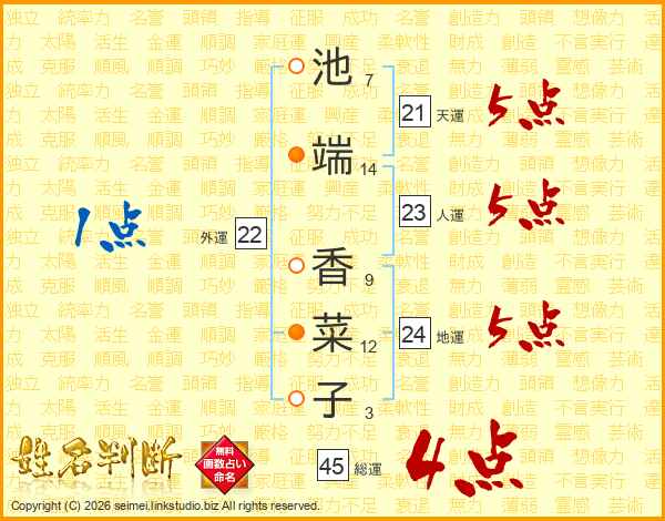 池端香菜子さんの総運は45画の4点!