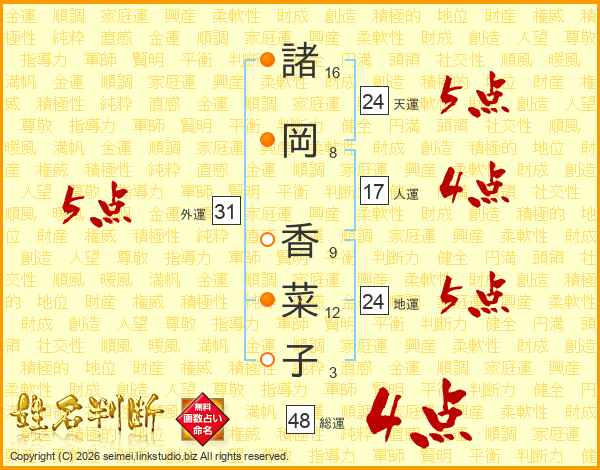 諸岡香菜子さんの総運は48画の4点!