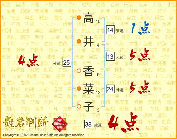 高井香菜子さんの総運は38画の4点!