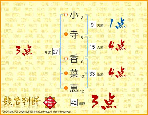 小寺香菜恵さんの総運は42画の3点!