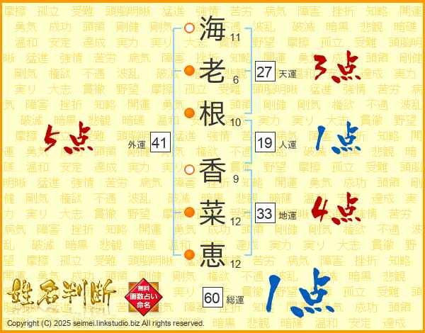 海老根香菜恵さんの外運は41画の5点!