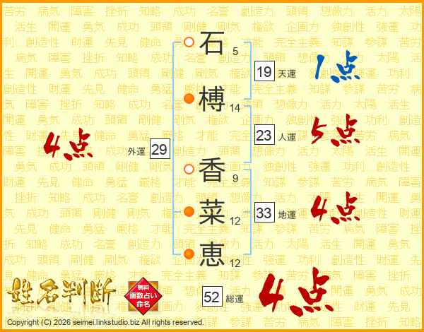 石榑香菜恵さんの総運は52画の4点!