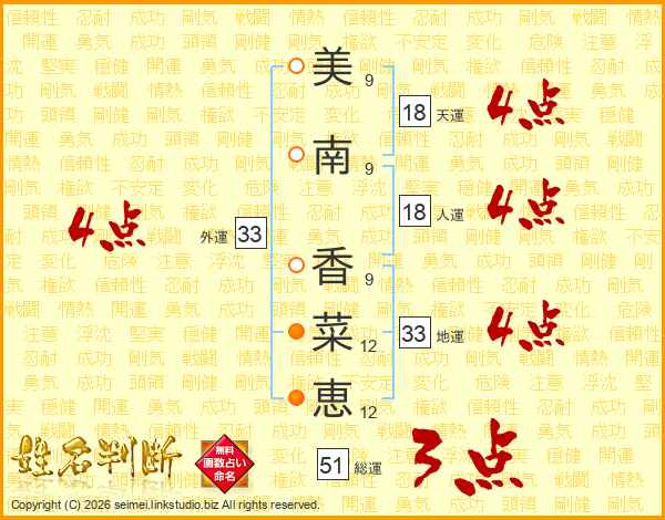 美南香菜恵さんの外運は33画の4点!