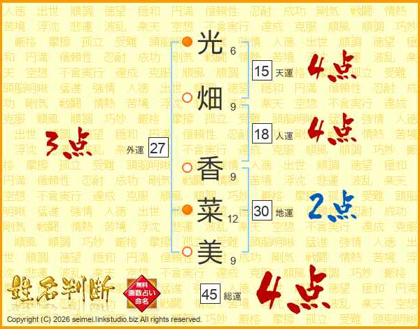 光畑香菜美さんの総運は45画の4点!