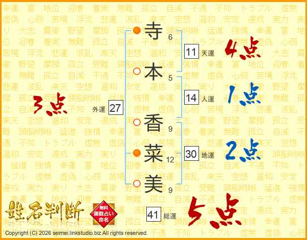 寺本香菜美さんの天運は11画の4点!