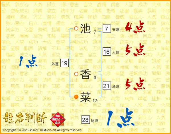池香菜さんの地運は21画の5点!