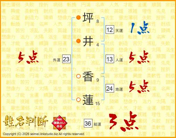 坪(8画)井(4画) 香(9画)蓮(15画)