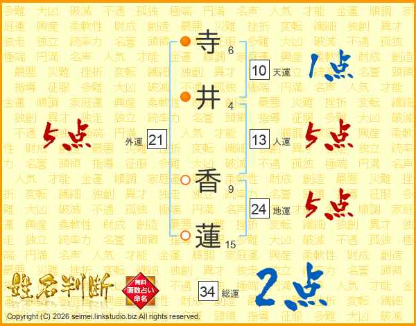 寺(6画)井(4画) 香(9画)蓮(15画)