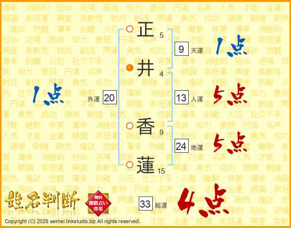 正(5画)井(4画) 香(9画)蓮(15画)