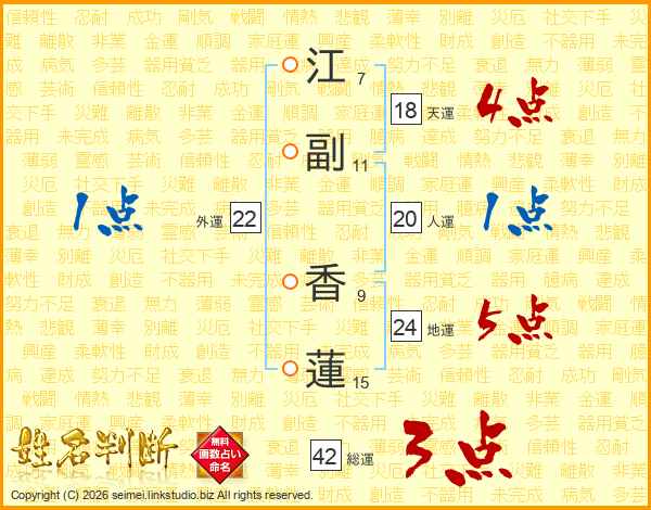 江副香蓮さんの総運は42画の3点!