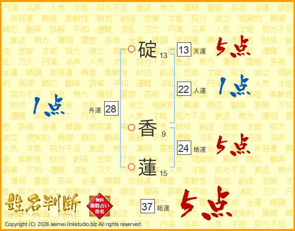 碇香蓮さんの総運は37画の5点!